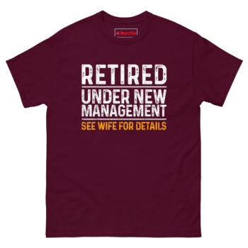 If you are searching for creative gifts for retirees that actually fit the person’s personality, the Retired Under New Management See Wife For Details T Shirt is a clear winner. It works perfectly as a “New Boss” retirement clothing option for the husband who just handed over the reins. Whether you need it for a party or a simple gesture to mark the milestone, this shirt delivers humor, comfort, and a genuine nod to the new chapter ahead. Grab the Retired Under New Management See Wife For Details T Shirt today and help them celebrate the transition with a smile.