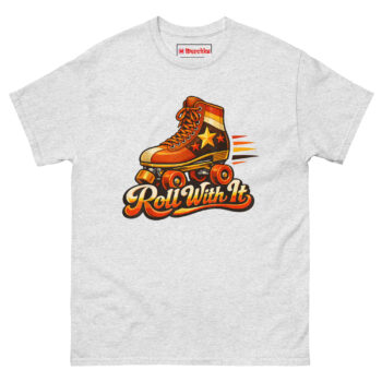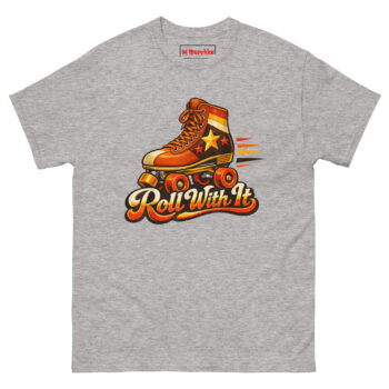 The spark for this Roll with It Roller Skating T Shirt design came from a worn-out skate rental at a local rink. We noticed how those old skates had character, scuffs, fading, and a story to tell. Instead of a clean, modern look, we leaned into that history. The burnt orange and gold color palette is a direct nod to the disco era when roller rinks were the center of social life. We added “speed lines” behind the skate to capture that feeling of flying around the rink on a Friday night. The phrase “Roll With It” works on two levels: it describes the action of skating, but it is also a reminder to stay flexible and keep moving when life throws you a curveball.