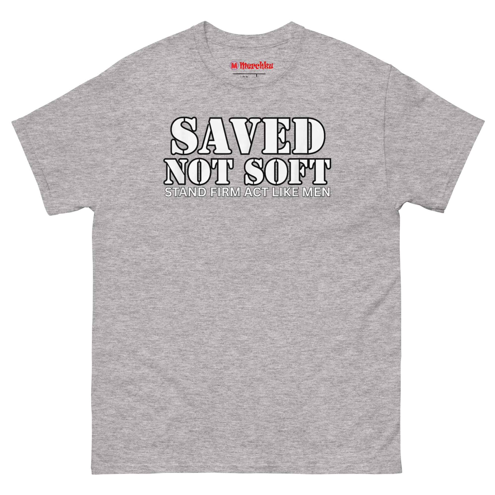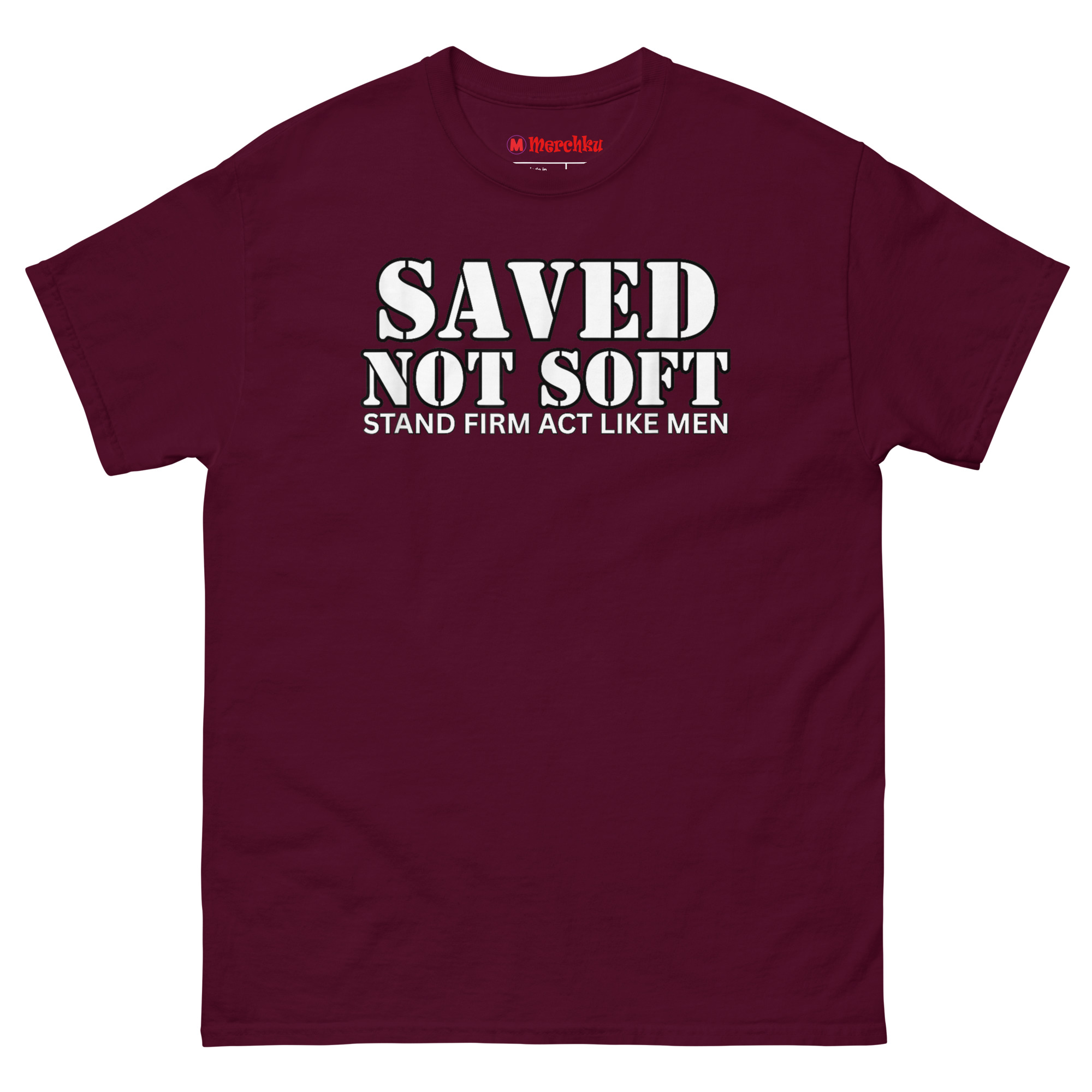 About Saved Not Soft Stand Firm Act Like Men T Shirt Design