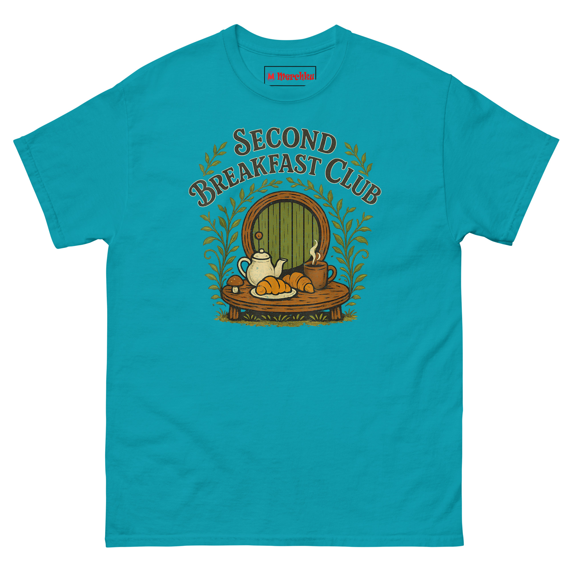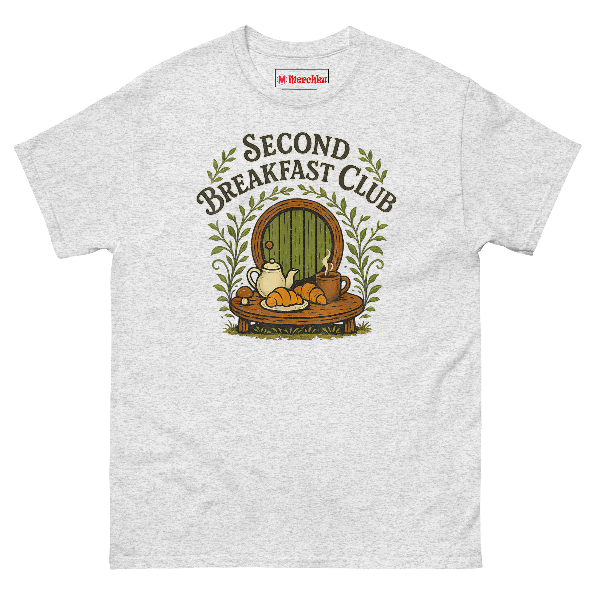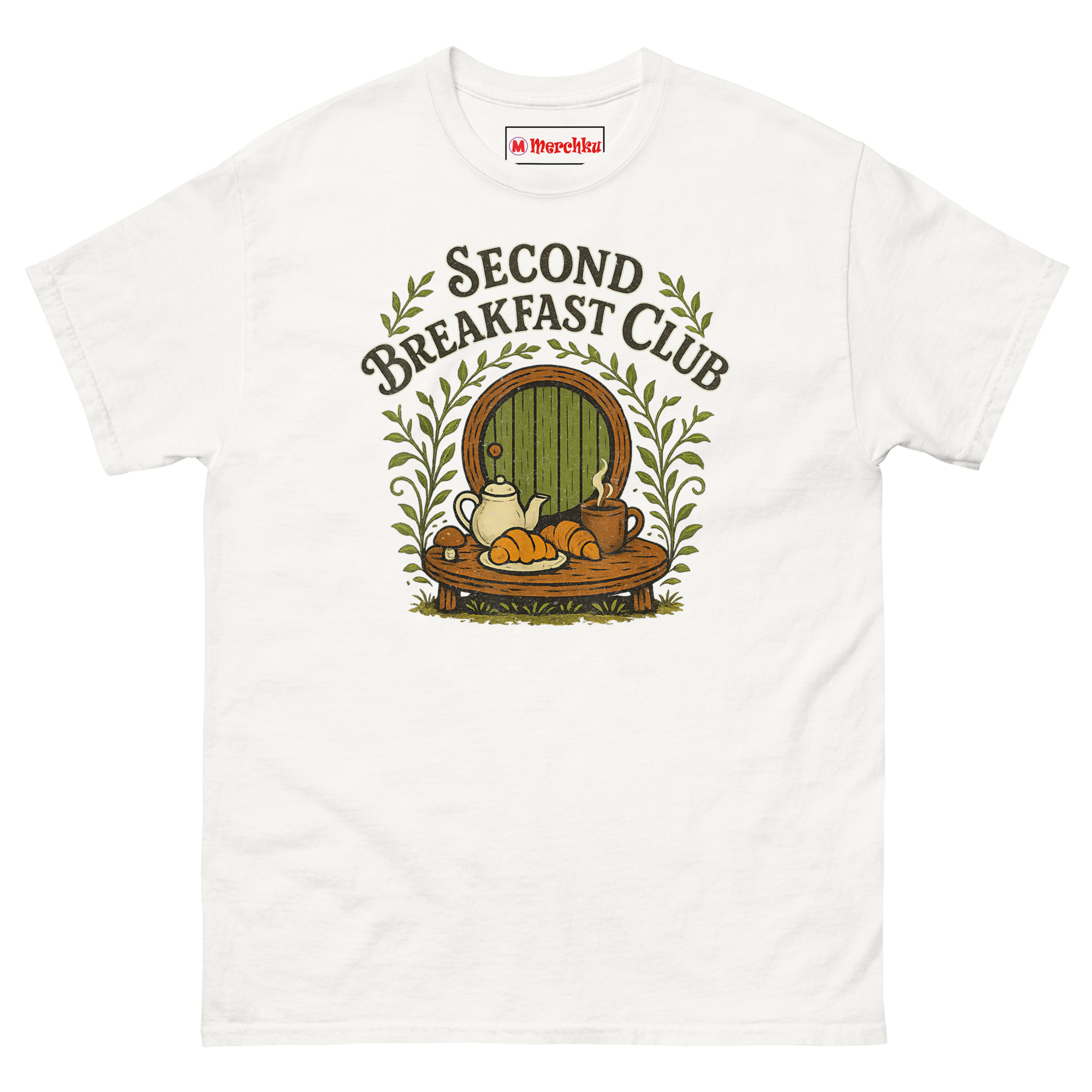 Second Breakfast Club T Shirt design came from a very personal place: a Sunday morning spent with coffee, a fresh pastry, and a well-worn copy of a certain fantasy novel about a short person who really values his meals. A friend walked in, saw me reading, and said, “You know, you’d totally join the Second Breakfast Club if it existed.” And honestly? They were right.