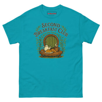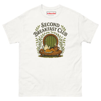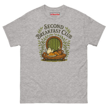 If you believe that elevensies aren’t just a suggestion and that a good book deserves a good pastry alongside it, this shirt is for you. The Second Breakfast Club T Shirt is the ultimate vintage bookish merch for anyone who takes their morning rituals seriously.