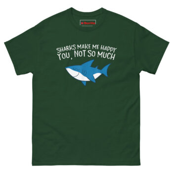 If you’ve been searching for Sarcastic ocean lover graphic tees that actually reflect your social preferences, stop looking. The Sharks Make Me Happy You Not So Much T Shirt combines genuine artistic quality with a message that lands every time. It’s the perfect Shop unique shark week humor shirts for shark enthusiasts, or just something to wear when you want to clarify your priorities. Whether you’re buying for yourself or as Aquatic predator fan gift ideas for the marine lover in your life, this shirt delivers. Add the Sharks Make Me Happy You Not So Much T Shirt to your cart today and let the happy shark tell the truth for you.