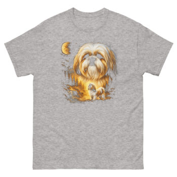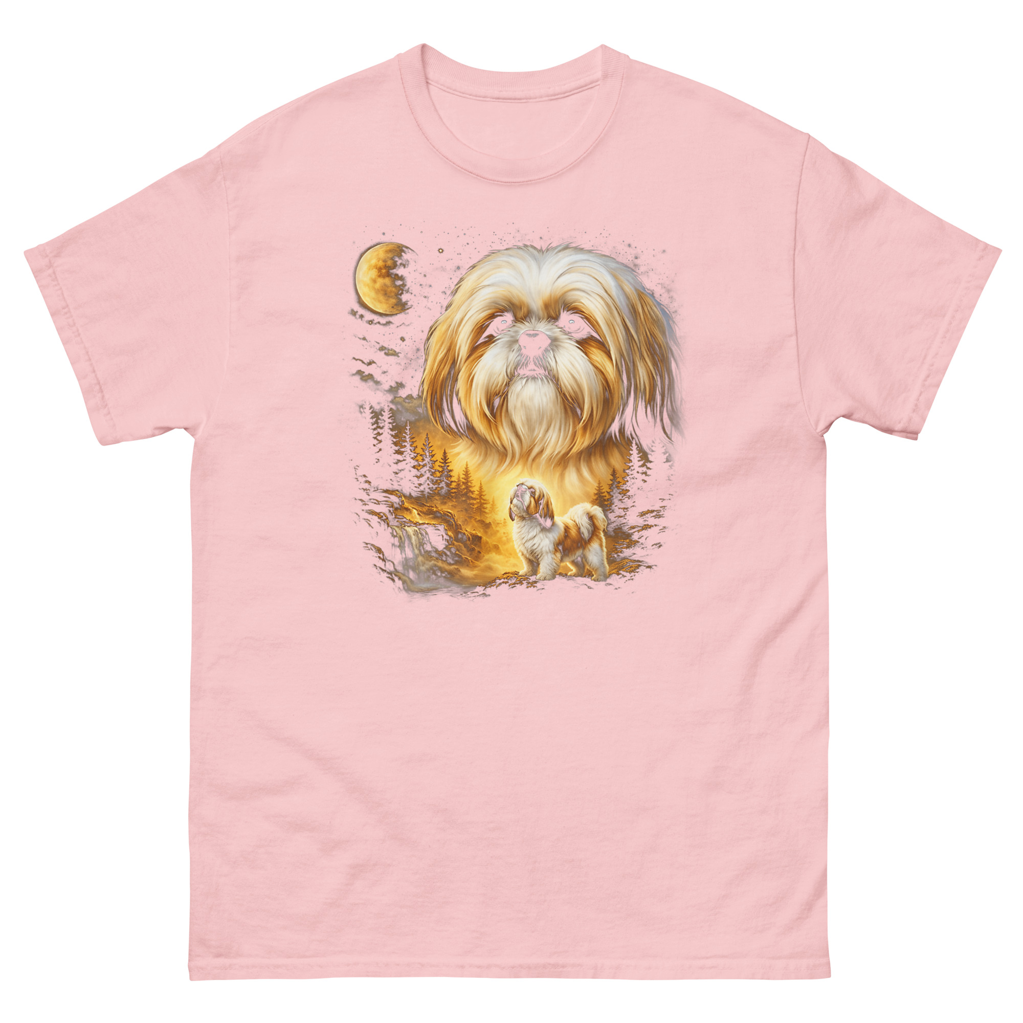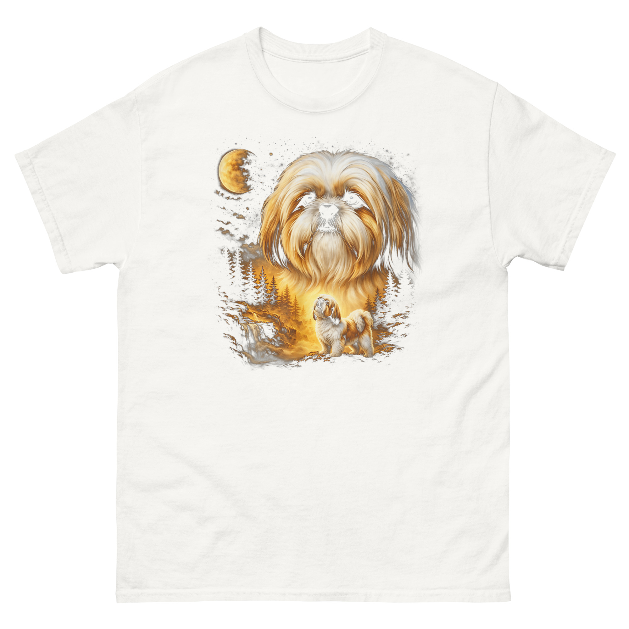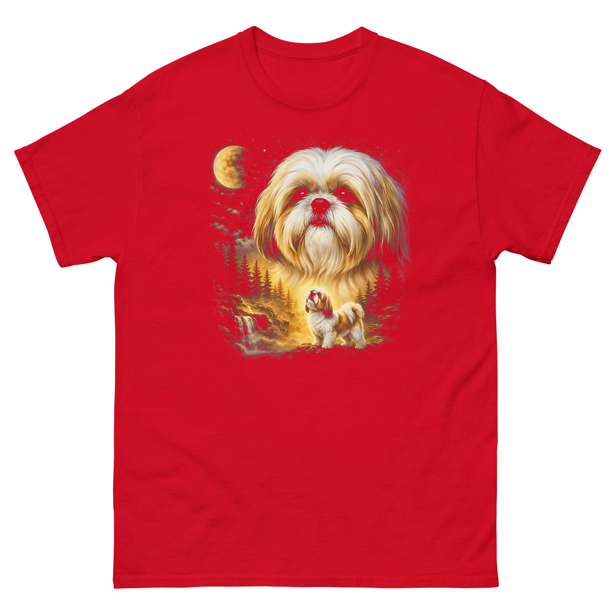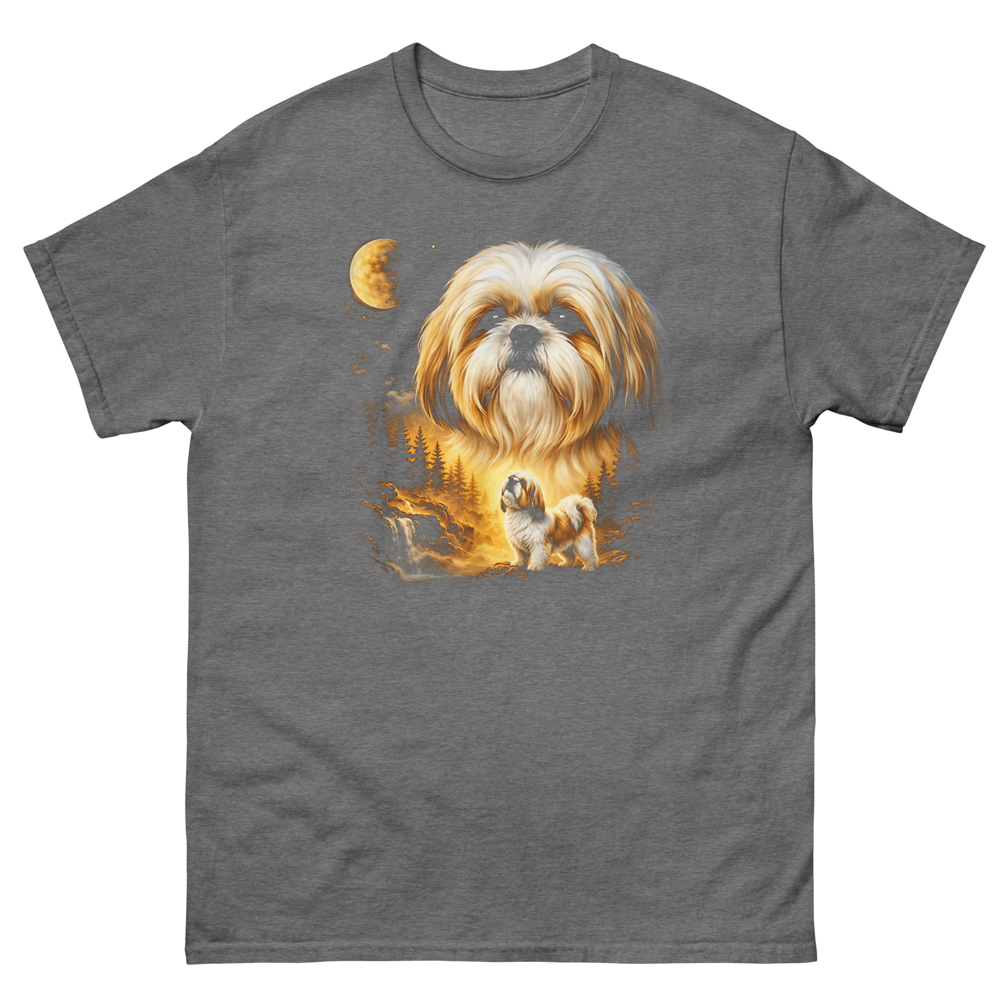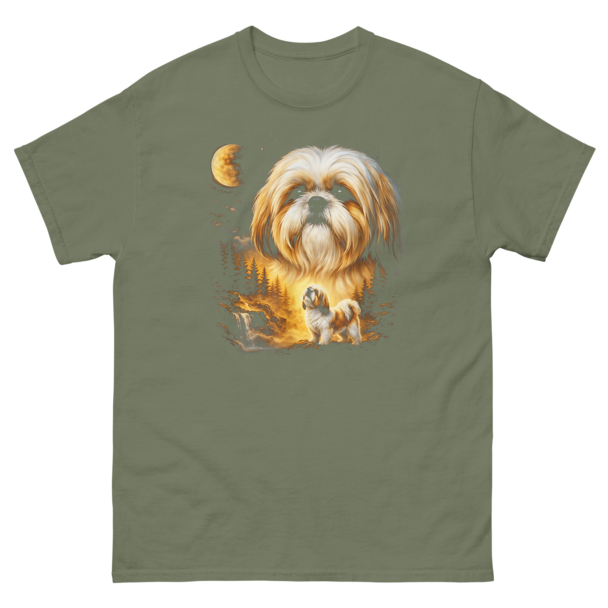 - Cinematic Art Style: Shih Tzu Howling T Shirt transforms a small dog into a mythical forest guardian worthy of a fantasy film poster.