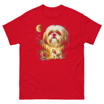 If you are searching for the perfect gift for Shih Tzu moms who love surreal art and humor, this shirt delivers. It works great as dog parody apparel for men and women who appreciate artistic takes on their favorite breeds. The majestic Shih Tzu lunar art design pairs perfectly with jeans for casual days or cozy lounge wear for nights in with your furry friend. Whether you are buying for yourself or a fellow Shih Tzu enthusiast, this wilderness animal portrait clothing captures the spirit of the breed. Grab the Shih Tzu Howling T Shirt today and let the world know that deep down, every pampered pup has a wild soul.