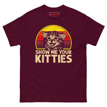 Ready to make your wardrobe a little more clever? Grab the Show Me Your Kitties T Shirt and let the world know you love cats and punchlines in equal measure. Whether you need Humorous cat lover graphic apparel for a gift exchange or the Best retro kitten pun shirts for adults who refuse to grow up completely, this tee delivers. Click “Add to Cart” now, because your kitties are waiting to be seen.