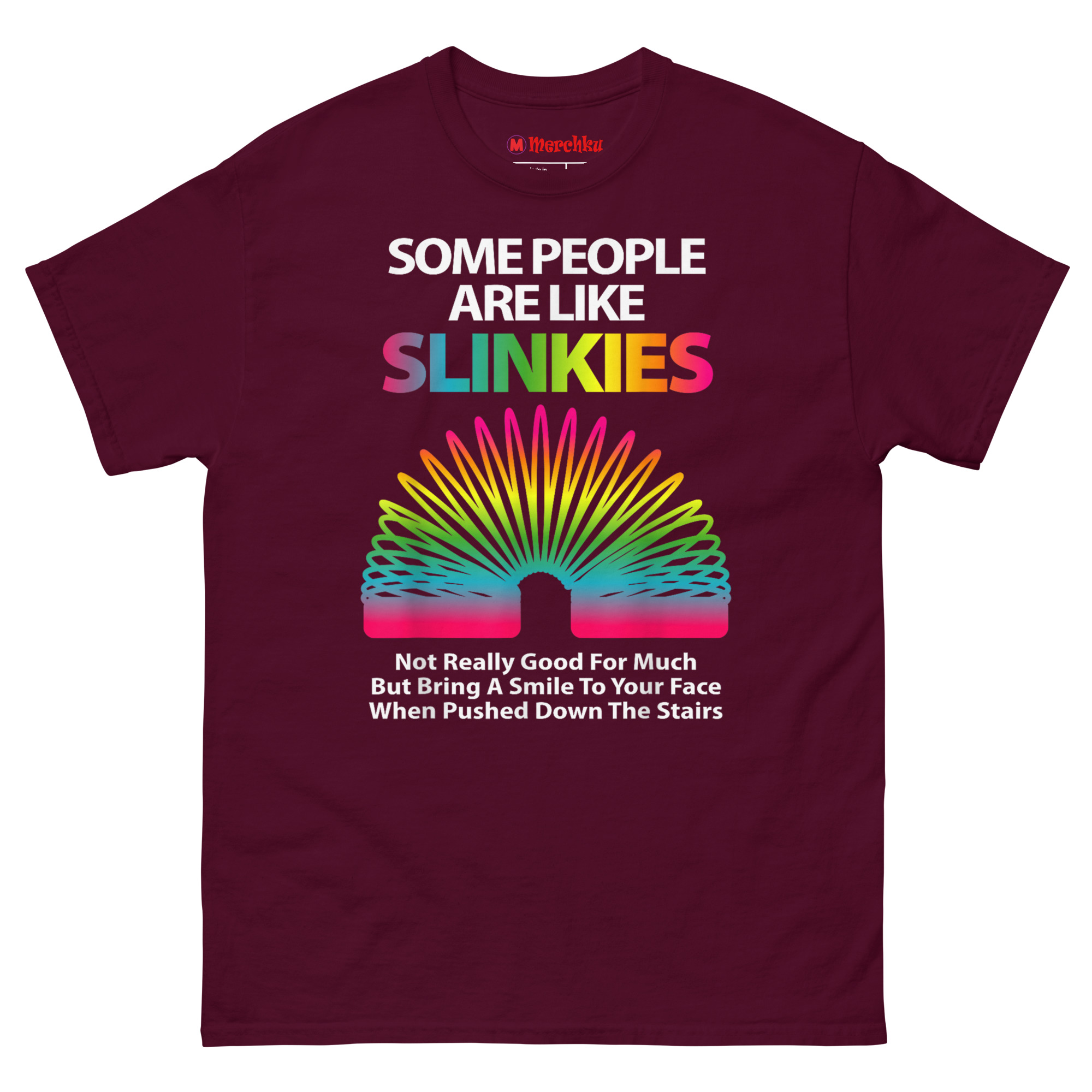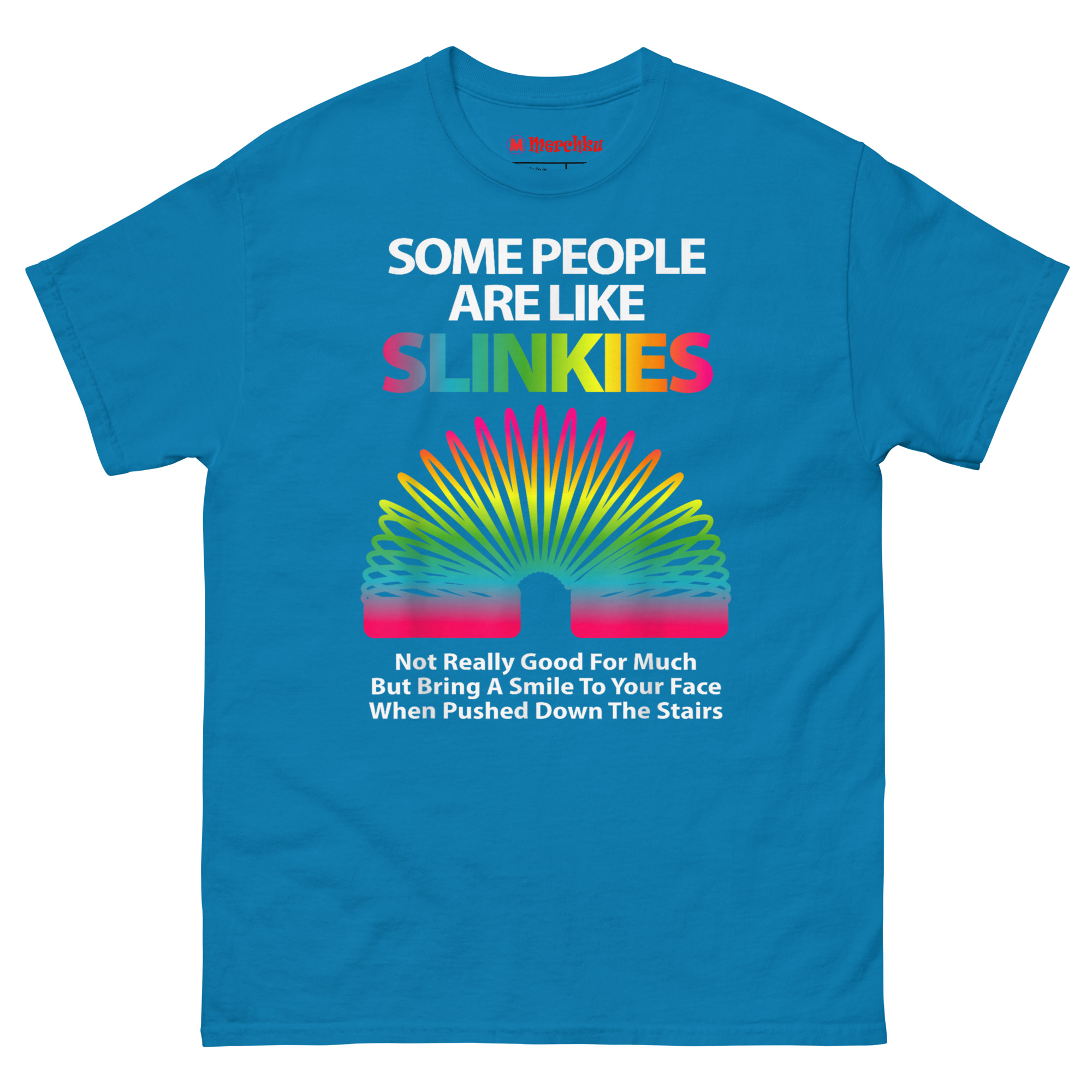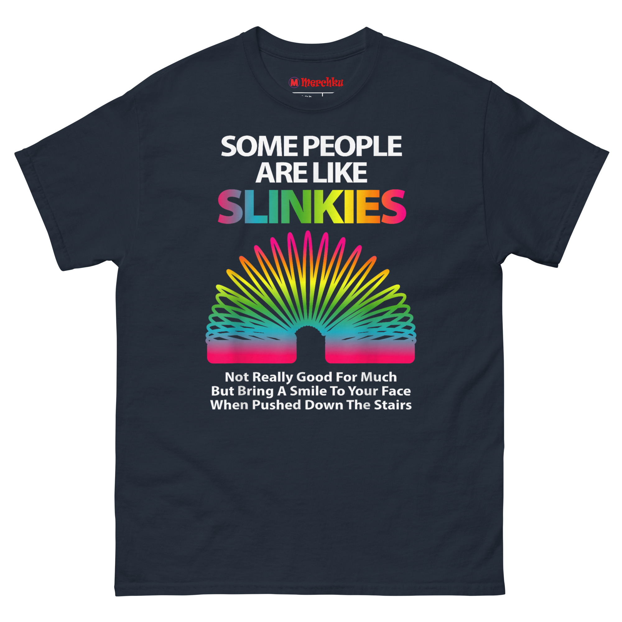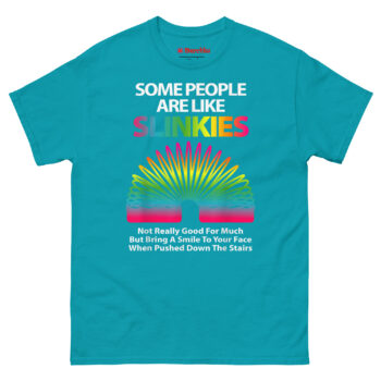 The idea for Some People Are Like Slinkies T Shirt started in a workplace breakroom, during a conversation about a particularly difficult coworker. You know the type, the one who adds no value but always seems to cause chaos. Someone made the comparison, and the room erupted in knowing laughter. It was that moment of shared frustration, that “catharsis through comedy,” that we wanted to bottle.