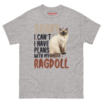 If you are searching for funny cat lover t-shirts for introverts who value their feline friendships, the Sorry I Can’t I Have Plans with My Ragdoll T Shirt delivers the perfect message. It speaks directly to Ragdoll cat owners, crazy cat ladies, and anyone who has ever canceled plans because their cat looked too comfortable. This piece of Ragdoll cat owner apparel turns your preference for quiet nights into a confident statement. Grab this cat mom life shirt today and let everyone know your calendar is already full, with cat cuddles.