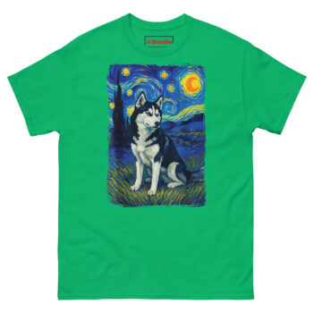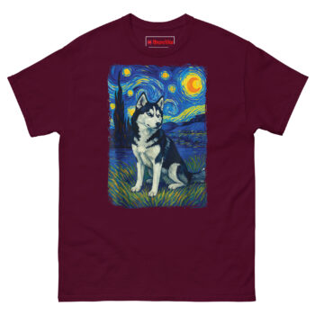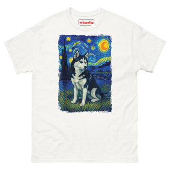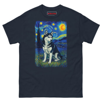 Unlike standard famous painting parody dog tees, this design treats the subject with respect. It’s sophisticated enough for a night out but comfortable enough for lazy Sunday mornings. For gifts for artistic Siberian Husky owners, you simply won’t find better Van Gogh style apparel for pet lovers.