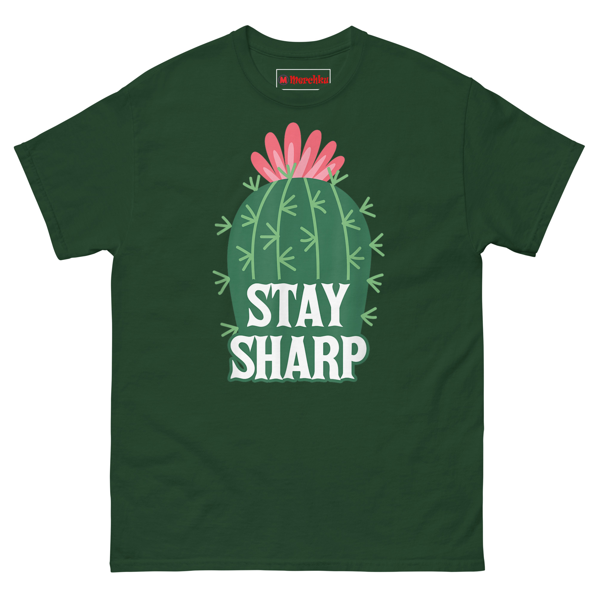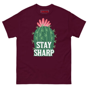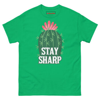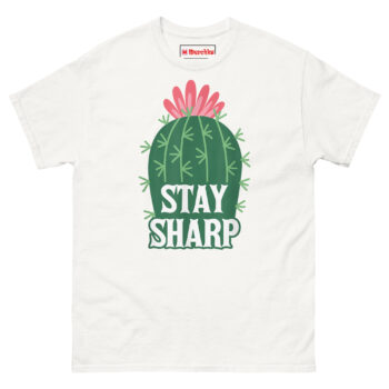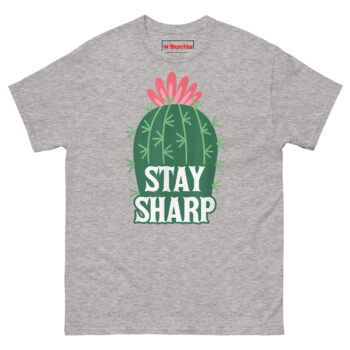 - Double Meaning Message: “Stay Sharp” works on two levels, cacti are literally sharp, and you need to keep your mind sharp to thrive. It’s the ultimate smart humor tee for people who appreciate wordplay.
