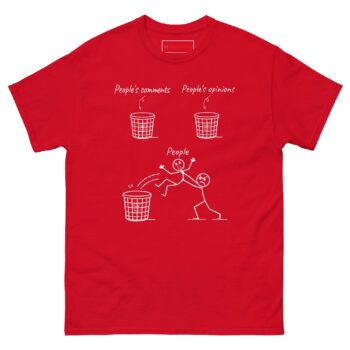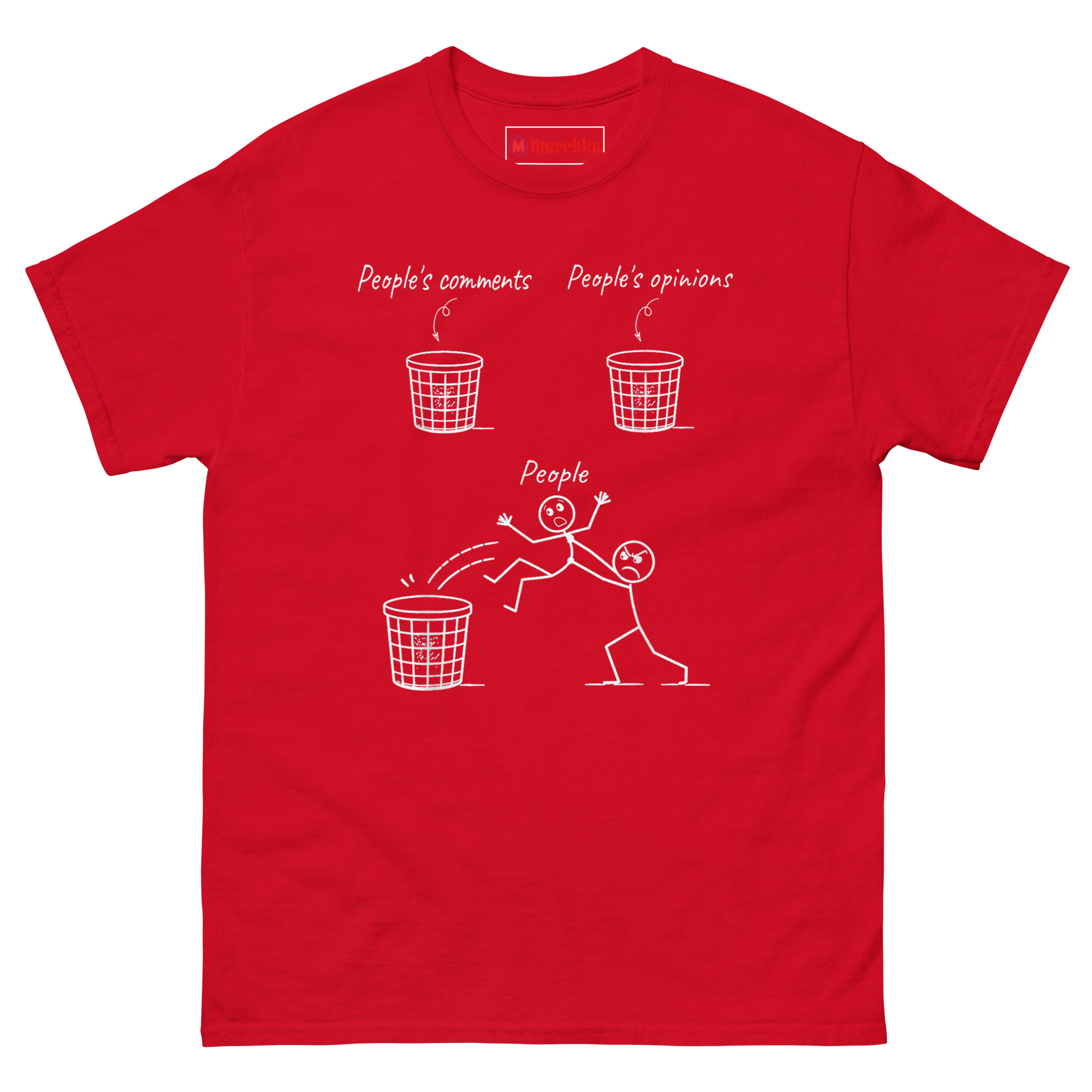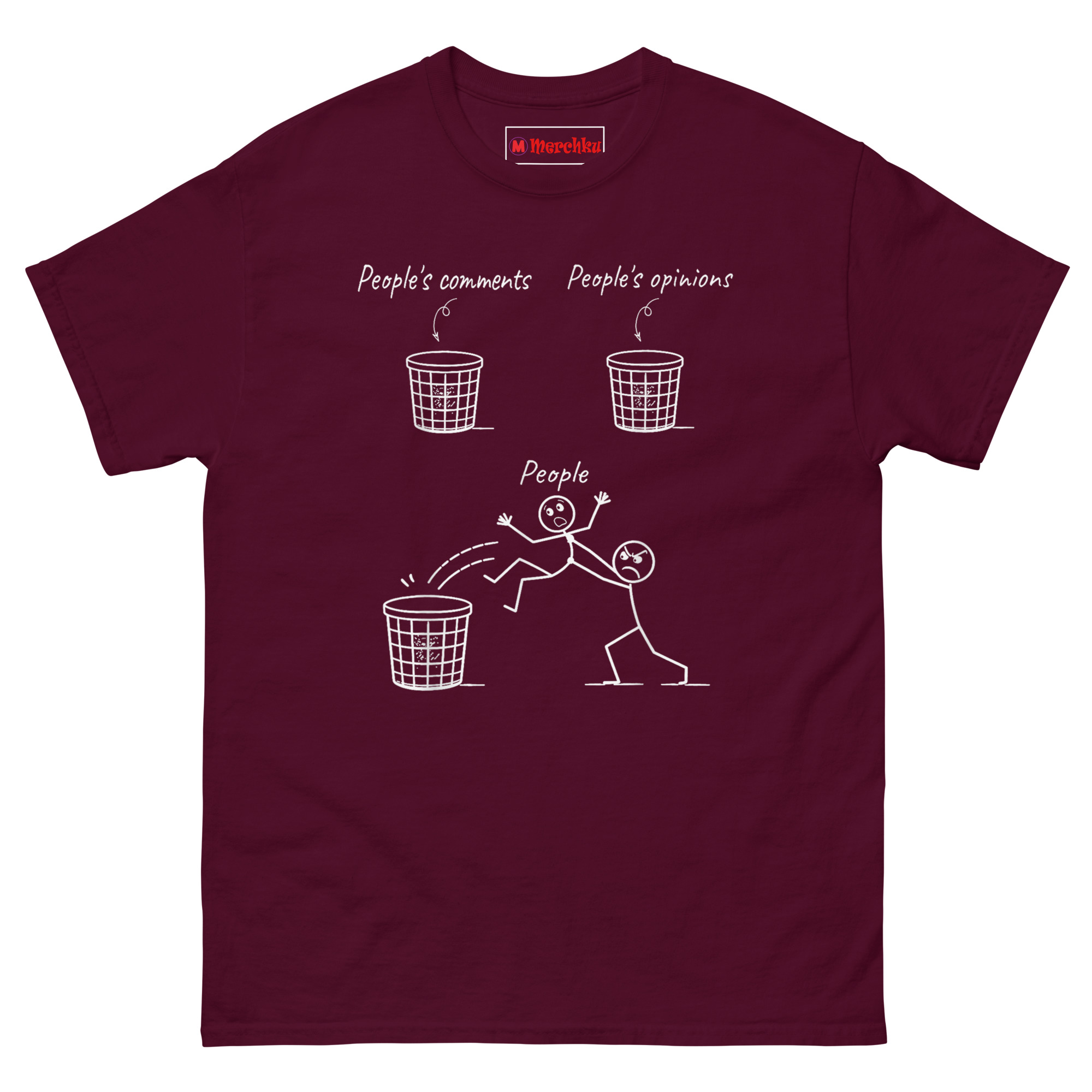 Throw away the noise. Whether you need a Stick figure shirt throwing people in trash for yourself or a Funny people’s opinions stickman t-shirt as a gift, this stick figure shirt delivers soft cotton and a message that sets clear boundaries. Order now and let the trash take itself out.