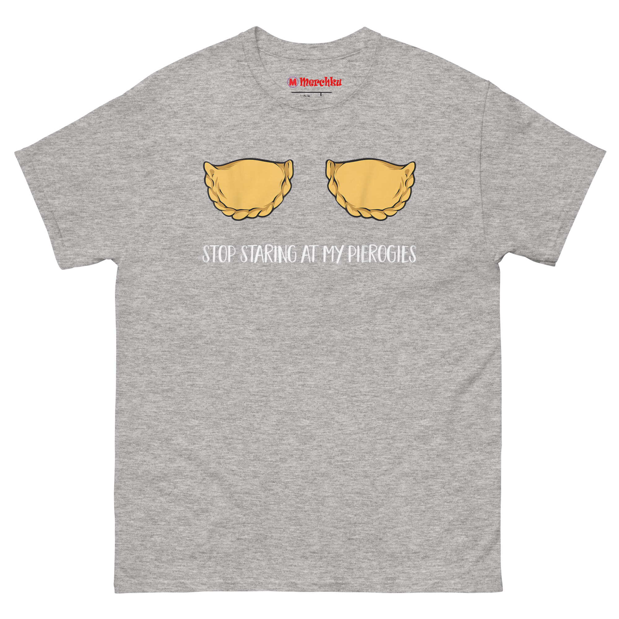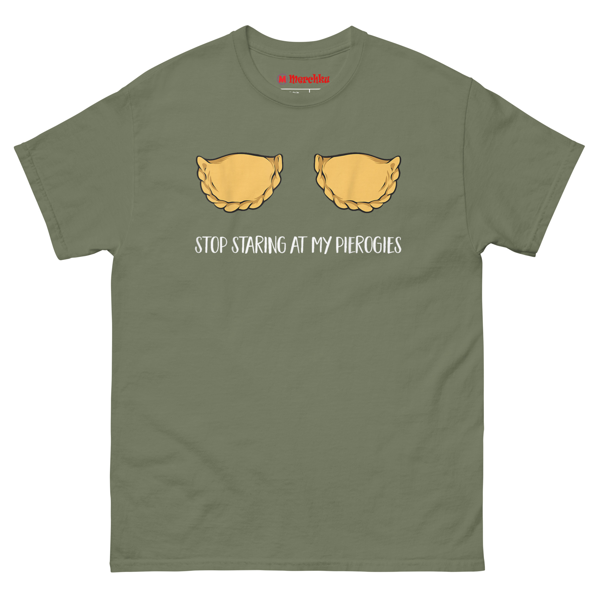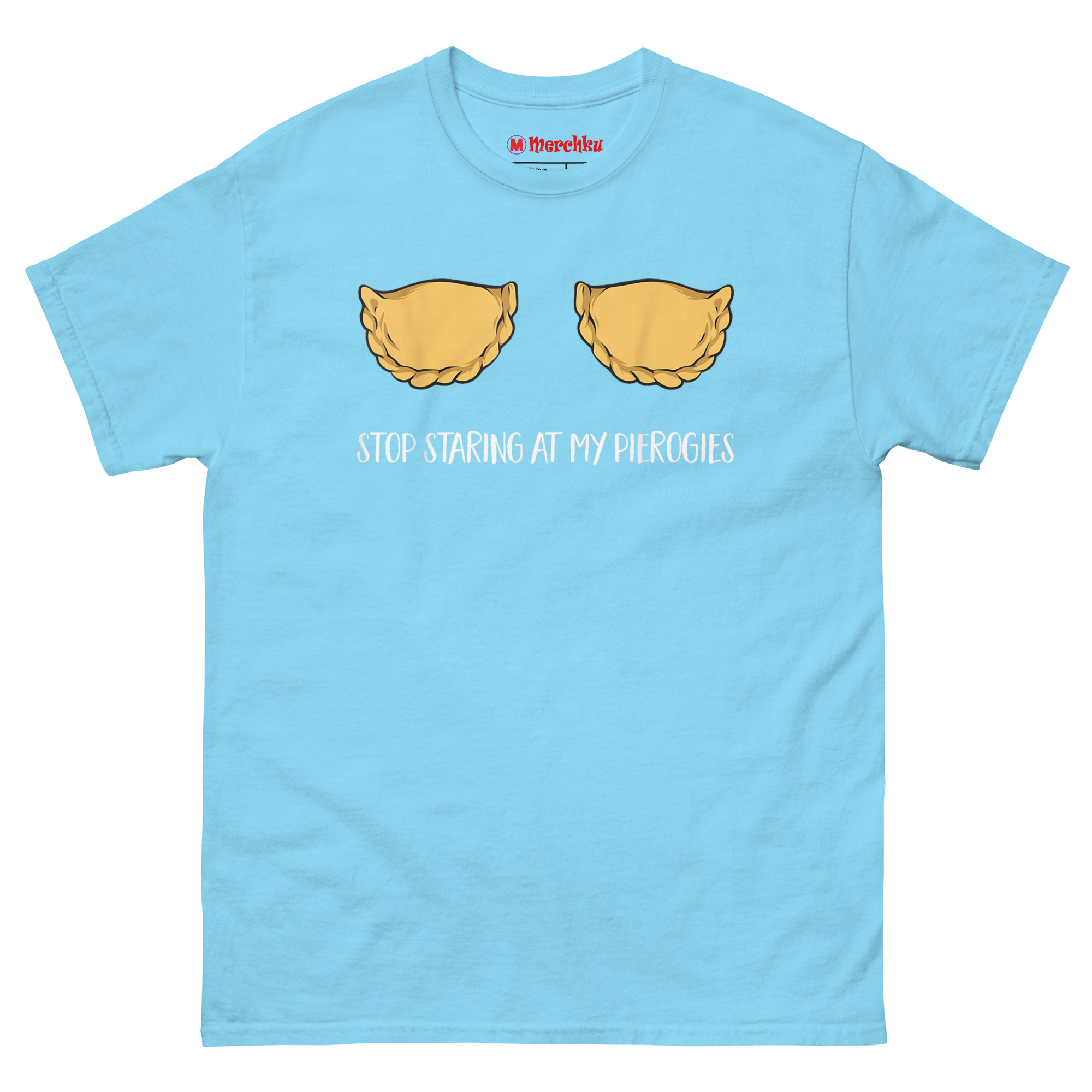 - Stop Staring at My Pierogies T Shirt Contains zero high-concern chemicals or dangerous substances