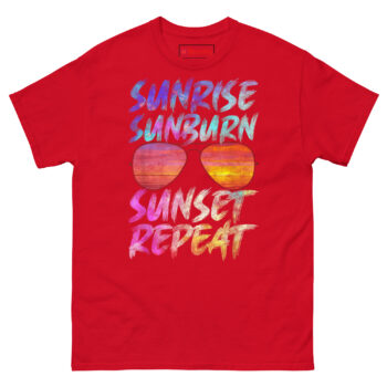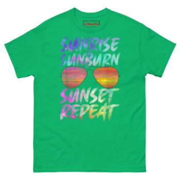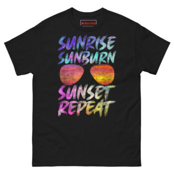 The Sunrise Sunburn Sunset Repeat Shirt is a classic, 100% cotton graphic tee built for long days in the sun. It’s the Funny Gift for Beach Vacation Lovers Who Love Tanning and Sunbathing, combining a worn-in artistic look with safe, certified printing. If you live for salty air, hot sand, and that golden hour glow, this Graphic t-shirts with sunset and sunglasses designs fits your vibe perfectly.