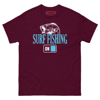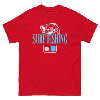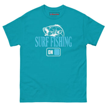 This is the surf fisherman t shirt, a graphic tee that captures the exact moment a shore angler shifts from work mode to full-on fishing mode. What makes it unique is the toggle switch graphic paired with the word “ON,” suggesting that the second his boots hit the sand, everything else gets switched off. It is designed for the dad, husband, or friend who measures time in tides and finds peace in the crash of waves, making it one of the best unique birthday gifts for surf fishing dad who loves shore casting and ocean angling, all printed on a comfortable 100% Cotton Tee.