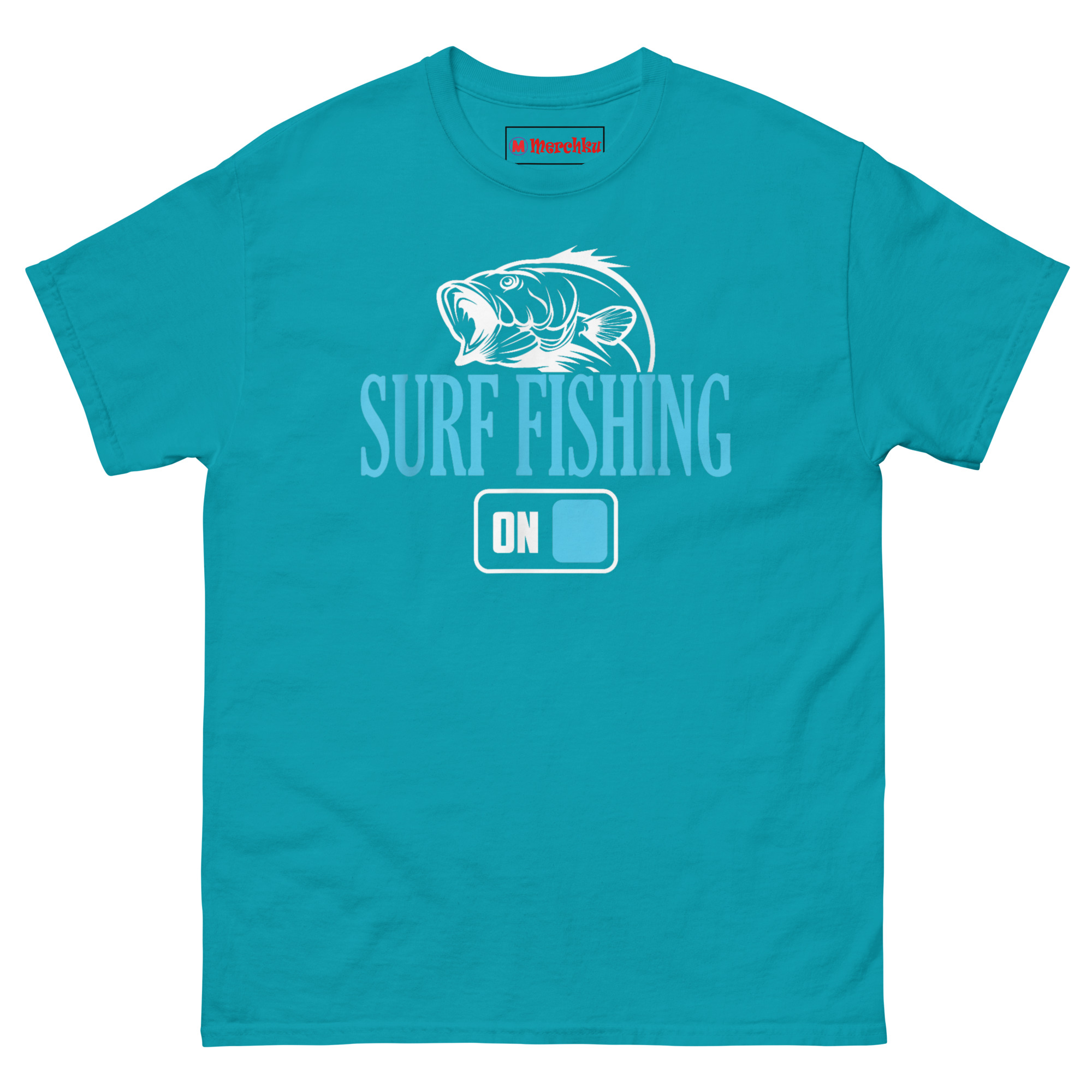 We realized that surf fishing is not just a hobby for some guys. It is a reset button. The ocean demands full attention, which means there is no room for work stress, bills, or anything else. The aggressive fish graphic on this shirt represents the thrill of the strike, that jolt of adrenaline when something hits your line. But the real star is the toggle switch. It signals that the wearer has left the dock of daily life and is now fully present in the surf. It is a shirt for the guy who needs the ocean to be himself again.