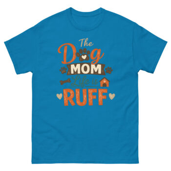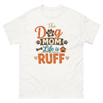 Ready to wear your dog mom title with pride and humor? The Dog Mom Life is Ruff T Shirt is the perfect way to do it. This charming pet pun shirt is ideal for dog park visits, casual errands, or just cozy days at home with your fur baby. It makes a fantastic gift for women in your life who are dedicated canine parents. Don’t wait to add this delightful piece of quote clothing to your wardrobe. Click ‘Add to Cart’ now to get your whimsical dog lover apparel delivered quickly.
