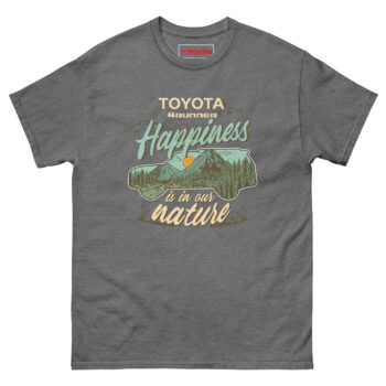 Toyota 4 Runner Shirt started on a dusty campsite in the Rockies. My buddy had just parked his old 4Runner after a ten-hour drive. He stepped out, looked at the mountains, and said, “You know, happiness really is in our nature. The truck just gets us there.”