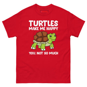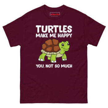 Honest statements deserve comfortable packaging. This classic tee delivers exactly that. Turtles Make Me Happy You Not So Much T Shirt 100% cotton fabric feels soft against skin from the first wear, with no scratchiness or break-in period. It drapes naturally without clinging, making it suitable for casual outings, reptile conventions, or simply lounging while watching your own turtles. The relaxed fit moves with you whether you’re cleaning enclosures or just existing at your own pace.