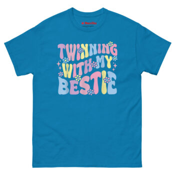 Twinning With My Bestie T Shirt classic tee is built for real life. Because itโs made from 100% cotton and features a pre-shrunk jersey knit, you donโt have to worry about it shrinking into a different shape after the first wash. The fabric weight hits that “just right” sweet spot, heavy enough to feel durable, but light enough to keep you cool during a sunny day out. Furthermore, the tubular construction means there are no side seams, which prevents twisting and ensures the “Twinning with My Bestie” graphic always sits perfectly centered.