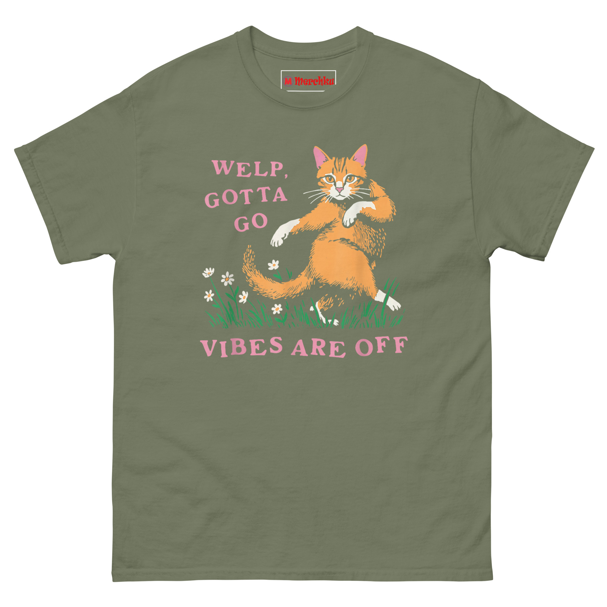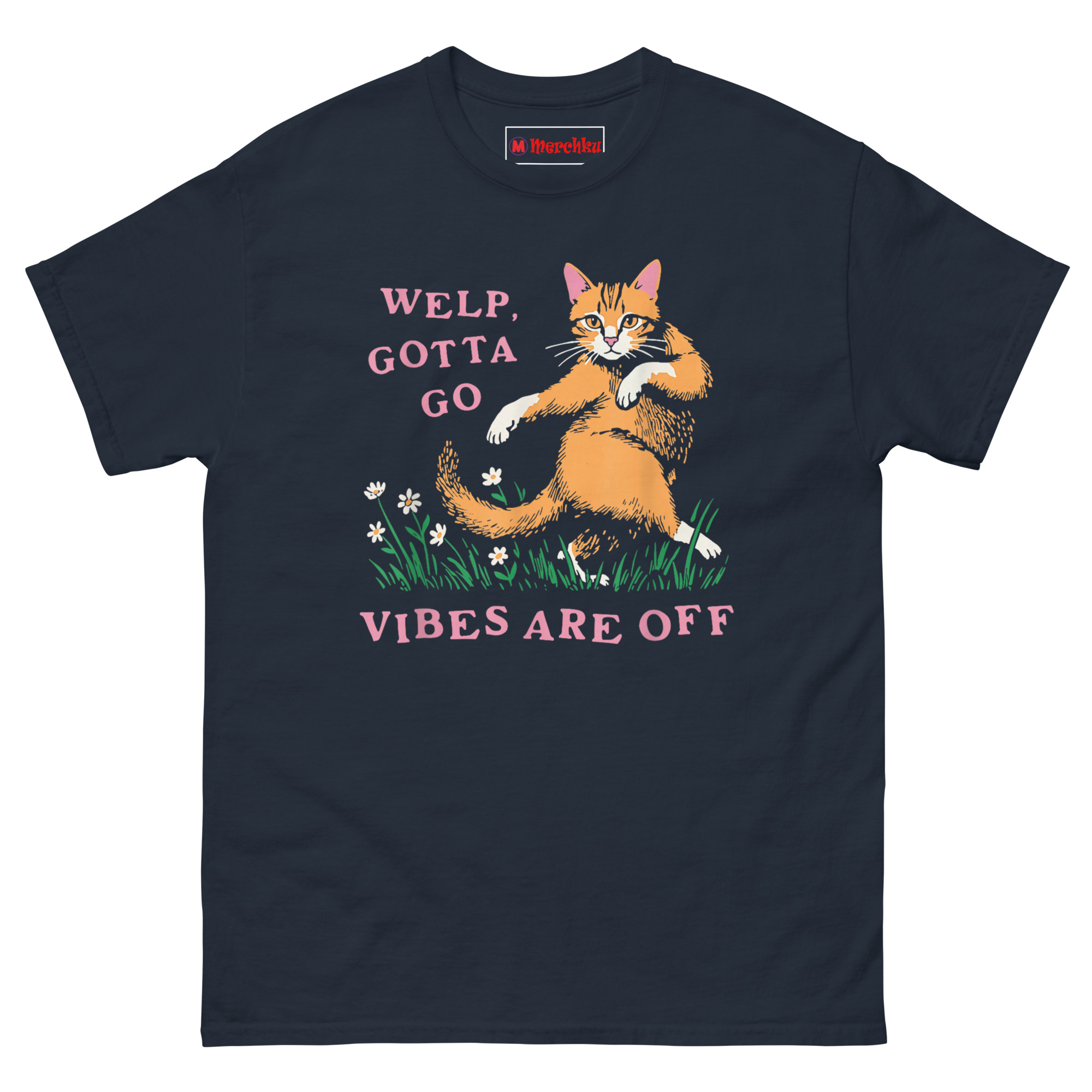 That moment captured something essential about modern life. Protecting your energy isn’t rude, it’s necessary. The phrase “vibes are off” has become the polite but firm way to excuse yourself from any situation that doesn’t serve you. We wanted to pair that sentiment with the perfect visual metaphor. Orange cats are internet royalty for a reason, they’re independent, chaotic, and completely unbothered by what anyone thinks. The vintage illustration style gives it a nostalgic, storybook feel, like a page from a childhood book with a very adult message. The cat walking away through daisies, glancing back with sass, says everything. This is the ultimate funny relatable introvert shirts for adults who know when to fold ’em and go home.