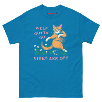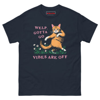 Welp Gotta Go Vibes Are Off T Shirt idea came from a painfully familiar experience. A friend was at a party that started fine but slowly shifted into uncomfortable territory. The conversation turned weird. The energy felt off. Instead of suffering through it, she simply smiled, said “Welp, gotta go,” and left. She texted later: “Vibes were off. My cat was waiting. No regrets.”