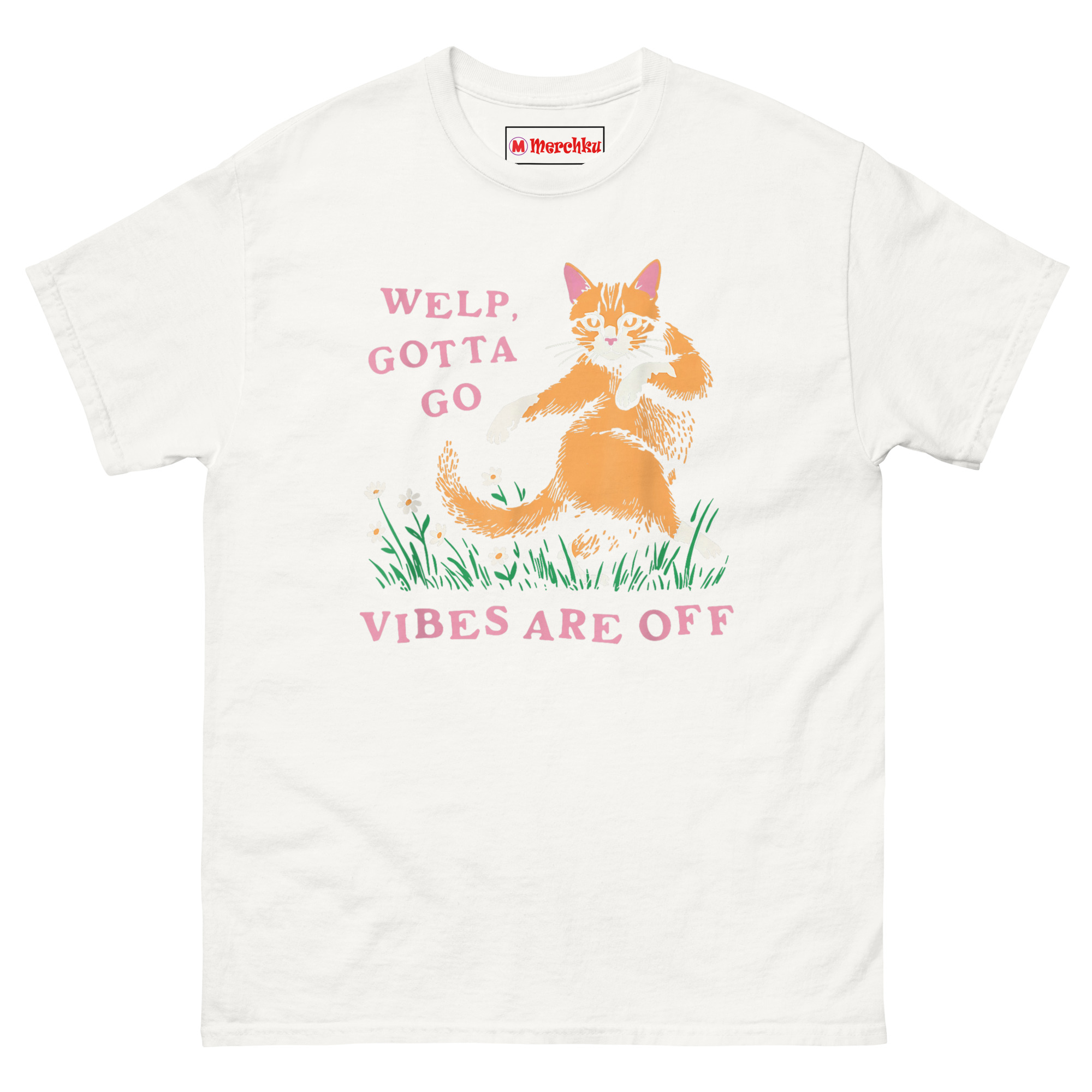 This is the Welp Gotta Go Vibes Are Off T Shirt, the perfect wearable excuse for anyone who values their peace over awkward social situations. It features a vintage-style illustration of an orange tabby cat striding away through daisies, paired with a hilariously relatable phrase. Designed for introverts, cat lovers, and anyone who has ever felt their social battery drain in real-time, this shirt lets you exit with style.