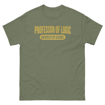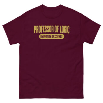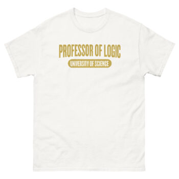 The Professor of Logic Shirt blends humor and intellect in a minimalist academic design. Featuring the bold text “Professor of Logic, University of Science”, this tee celebrates thinkers, philosophers, and science lovers with a witty twist.