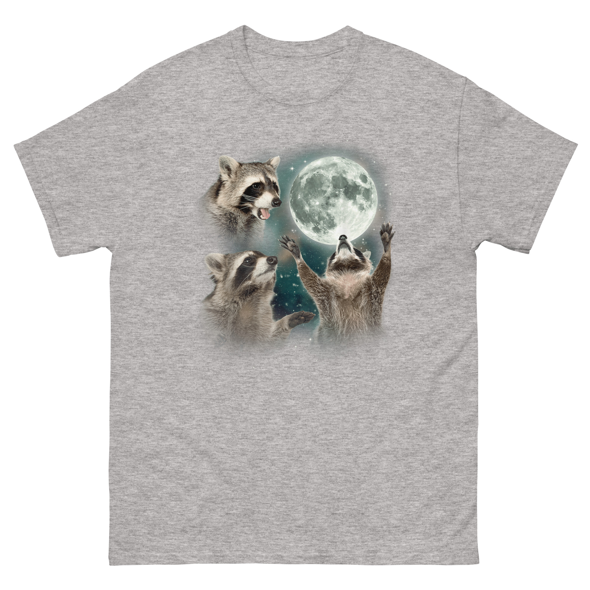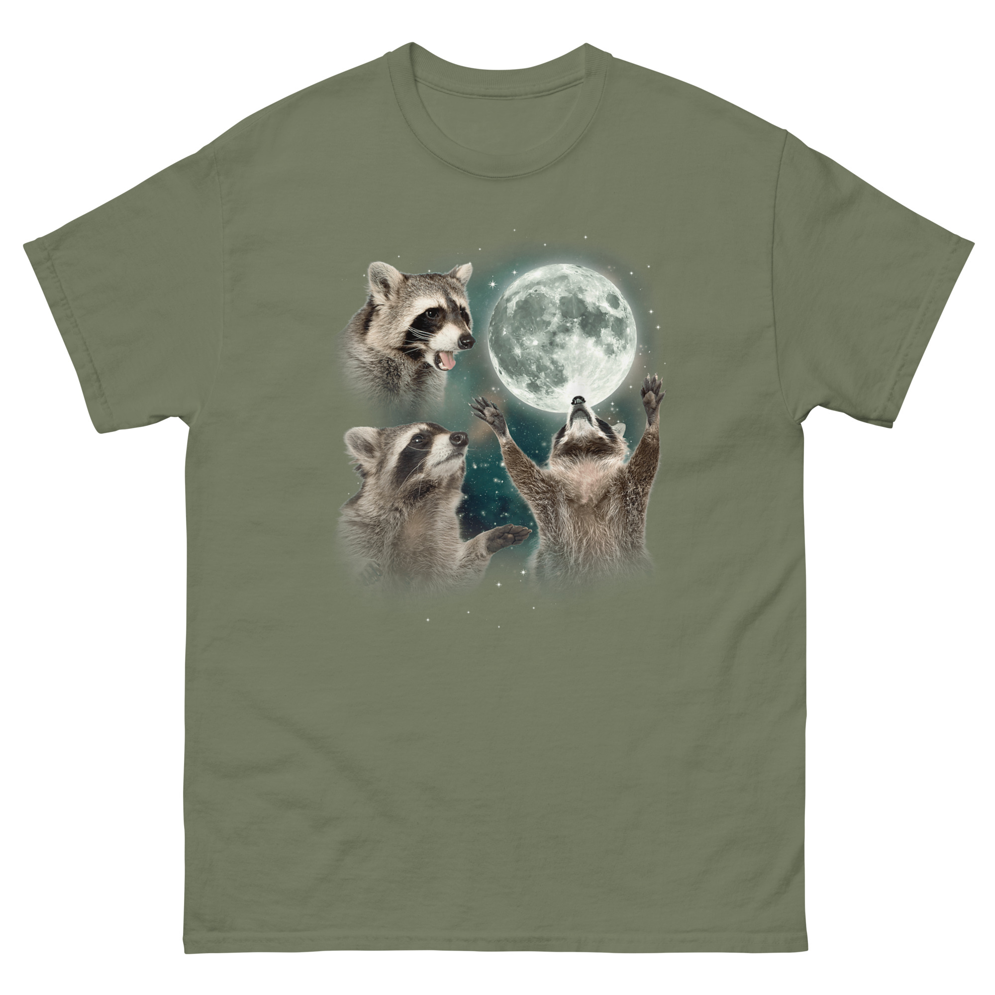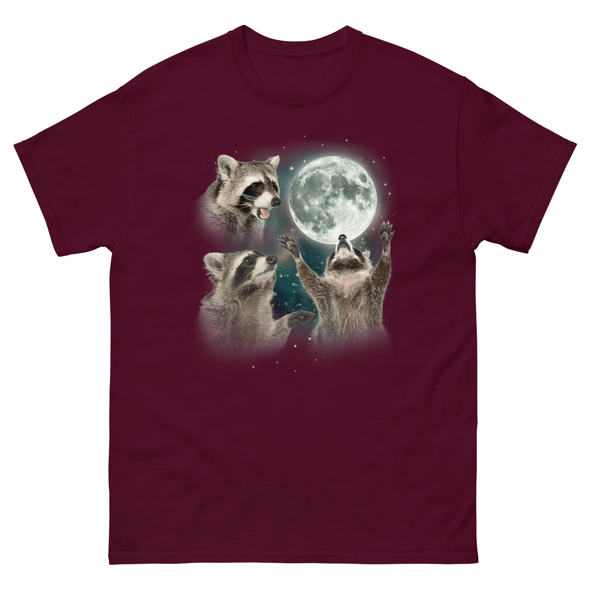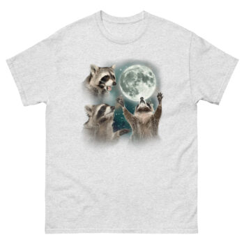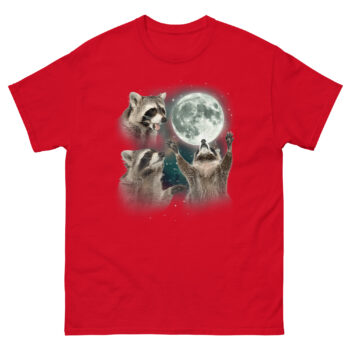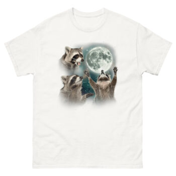 If you are searching for ironic raccoon spirit animal gear that doubles as high-quality art, this shirt delivers. It works great as a three raccoon moon shirt for daily wear or as a conversation starter at parties. The trash panda lunar howl top pairs perfectly with jeans for casual outings or makes an unforgettable gift for friends who appreciate absurd humor. Whether you are treating yourself or looking for a unique present, Raccoon Howling T Shirt design celebrates the survivor spirit of the most adaptable creature in the neighborhood. Grab the Raccoon Howling T Shirt today and let the world know that even trash pandas deserve their moment in the moonlight.