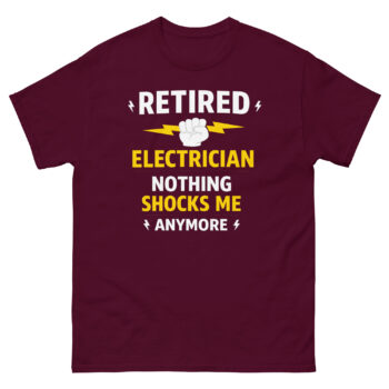 This Retired Electrician T Shirt is a best-quality cotton tee made for the tradesperson who has earned their retirement. Its unique design uses bold, industrial-style graphics and a clever double meaning to celebrate a career spent mastering a dangerous craft. Specifically, it’s designed for the retired electrical worker, IBEW member, or master electrician who wants to wear their hard-earned status with a bit of pride and humor.