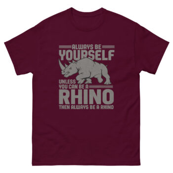 Don’t just be yourself—be a rhino! Click ‘Add to Cart’ now to get your iconic “Always Be a Rhino” shirt and wear your attitude with pride.