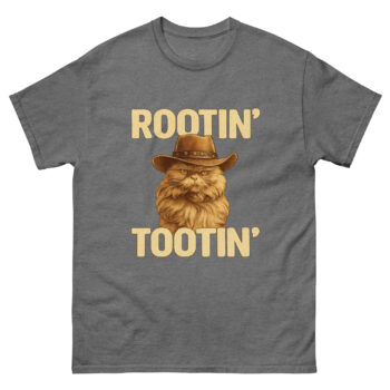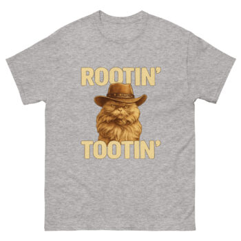 Bring some wild west humor to your wardrobe with the Rootin’ Tootin’ Cat Shirt. Featuring a fluffy grumpy cat rocking a cowboy hat under bold western text, this funny graphic tee is the purr-fect mashup of cowboy style and feline charm.