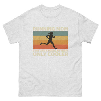 Whether you’re a marathon mom, a weekend jogger, or just a busy parent who sneaks in runs between school drop-offs and laundry, this cool retro running mom t-shirt is your badge of honor. With its vintage-inspired design and witty “JUST LIKE A REGULAR MOM, ONLY COOLER” tagline, it’s the ultimate motivational shirt for athletic moms who refuse to slow down.