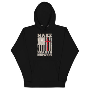 Make Heaven Crowded Hoodie – American Flag & Red Cross Design