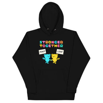 Stronger Together Hoodie – Bears Holding Peace and Love Signs