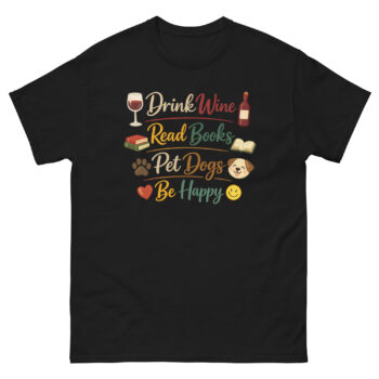 Drink Wine Read Books Pet Dogs Be Happy T Shirt