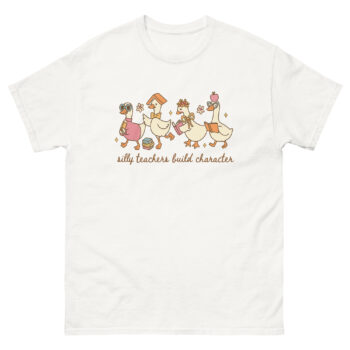 Celebrate the lighter side of teaching with this Silly Teachers Build Character Teacher Shirt. Featuring quirky cartoon geese dressed as teachers, this design brings smiles to the classroom and makes a thoughtful funny teacher appreciation gift. Perfect for end-of-year, Teacher Appreciation Week, or any time you want to honor teachers who inspire with both wisdom and humor.