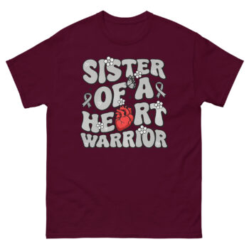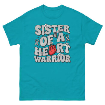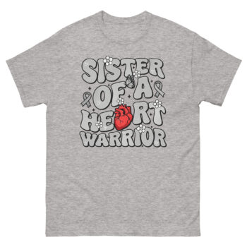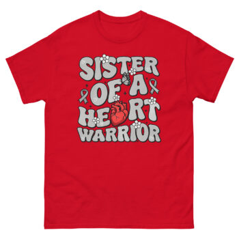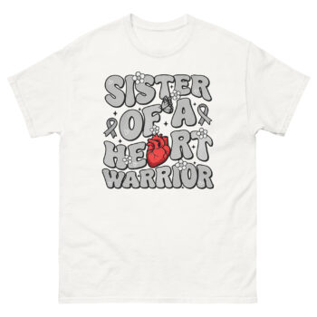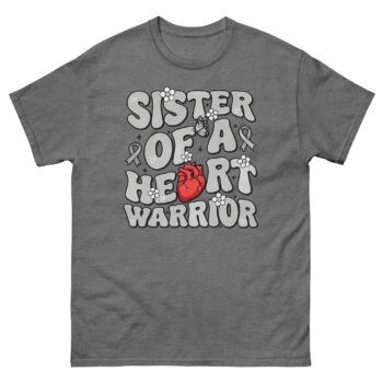 We created Sister of a Heart Warrior T Shirt design to recognize an often-overlooked role: the sibling. The inspiration came from families who showed us that a medical challenge affects everyone, and sisters display incredible sibling resilience. Our “Beauty in the Struggle” philosophy guided every element.