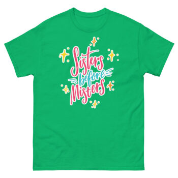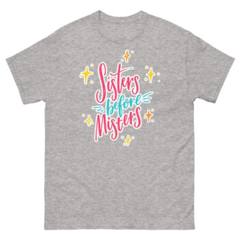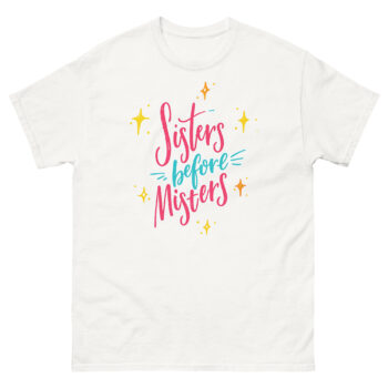 Ready to honor your favorite people? This Sisters Before Misters t shirt is a classic symbol of friendship and loyalty. Whether you’re buying one for yourself and your bestie or looking for that perfect independent woman statement clothing for college students, it delivers on message, comfort, and quality. Click ‘Add to Cart’ to celebrate sisterhood in style.