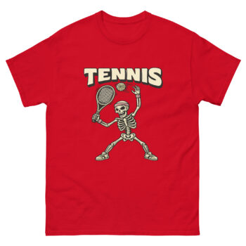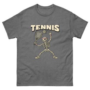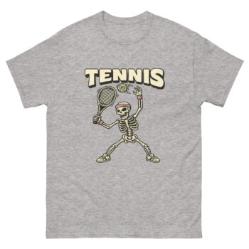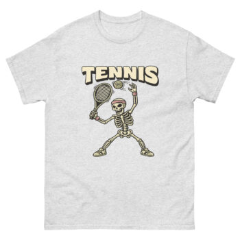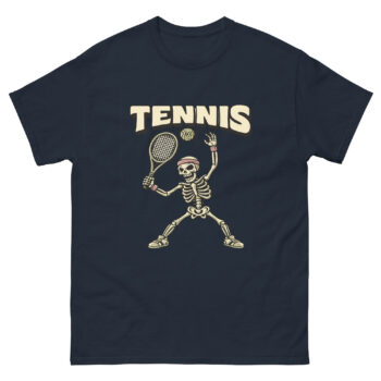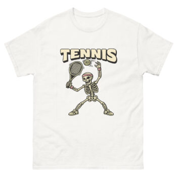 Are you a tennis fan who loves to stand out? Moreover, do you enjoy a design that’s as unique as your backhand? If so, you’re going to love our Skeleton Tennis Player Funny Graphic T-Shirt. This isn’t just another piece of clothing; it’s a statement. This incredible shirt perfectly combines a love for sports with a delightfully spooky sense of humor, making it the ultimate tennis lover Halloween shirt or a year-round conversation starter.