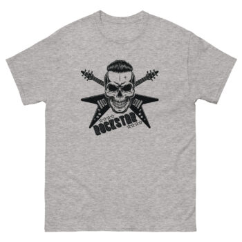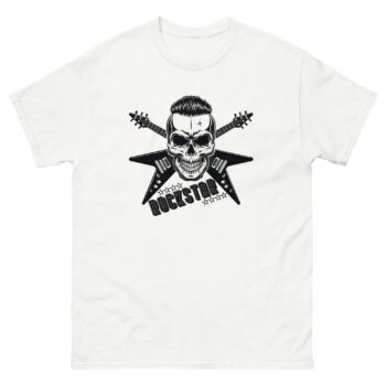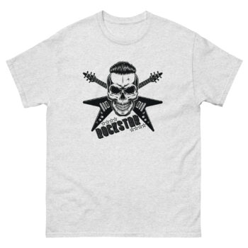 Unleash your inner rock legend with this bold skull rockstar t-shirt. Featuring a fierce skull design with crossed guitars, it’s the perfect fit for true rock lovers, bikers, and fans of gothic fashion. Make a statement with every step.