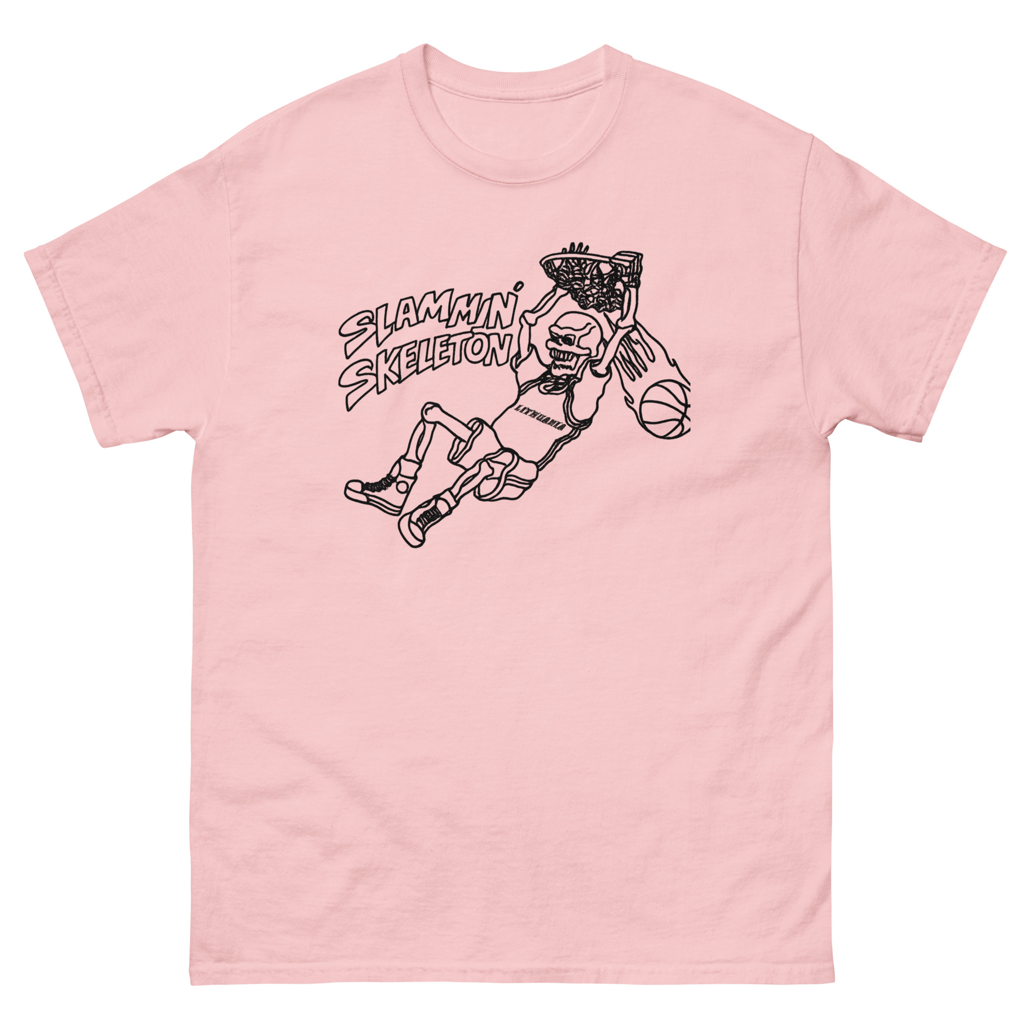 At first glance, you see a skeleton soaring through the air, dunking a flaming ball with explosive power. But look closer. Every detail is packed with meaning, masterfully created by artist Greg Speirs in 1992. The skeleton doesn’t represent death; instead, it signifies survival and strength rising from hardship. Meanwhile, the explosive tie-dye in the colors of the Lithuanian flag isn’t just a style choice. In fact, it’s a bold shout of freedom and counterculture. This fusion of comic-book energy, surrealism, and national pride creates more than a graphic. Ultimately, it’s a statement where vintage sports meet art activism.