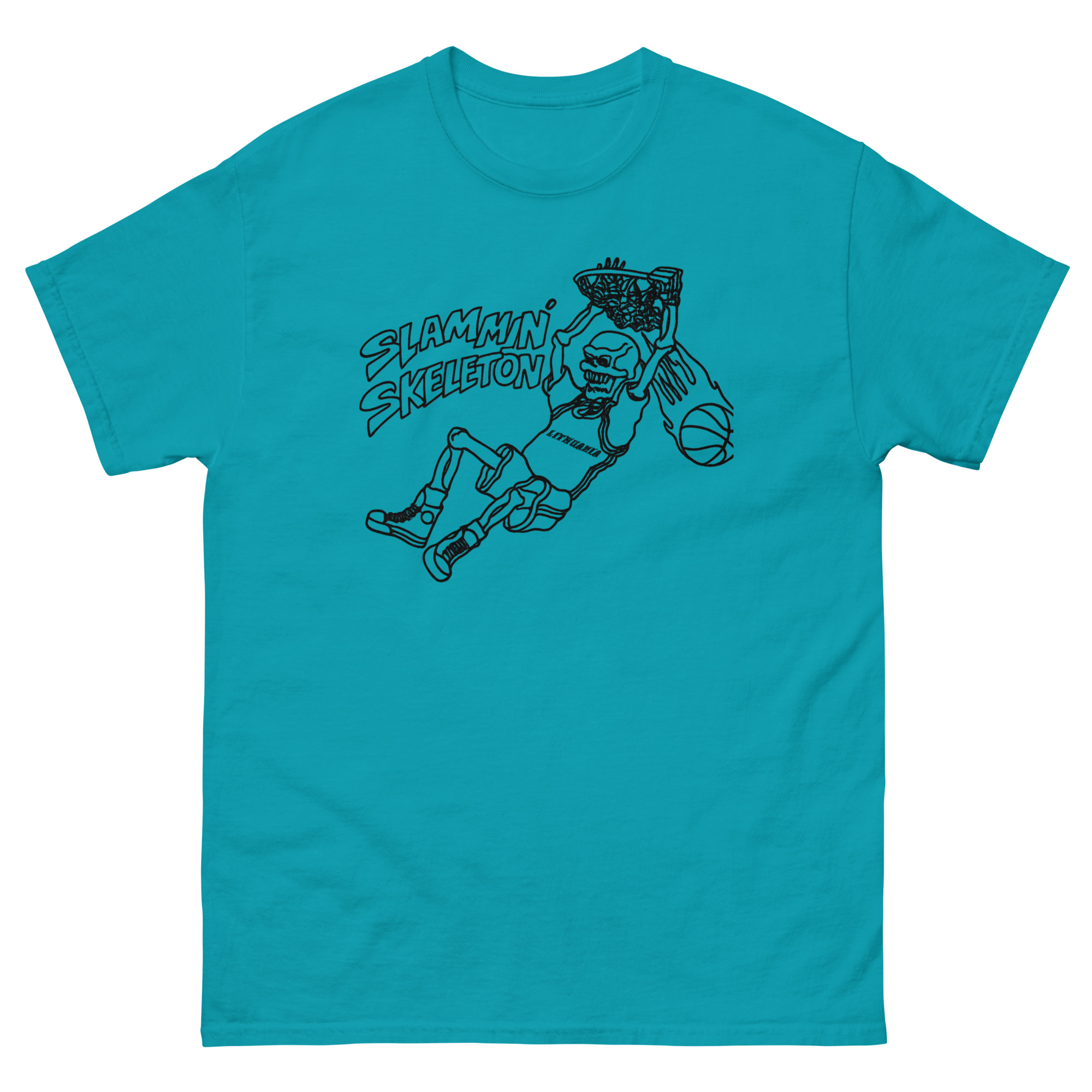 How will you wear your piece of history? Its versatile design fits seamlessly into any wardrobe. To keep things classic and casual, wear it with your best-loved jeans and sneakers. Additionally, layer it under a denim jacket or flannel for an edgy, street-smart outfit that nods to vintage sports style. Importantly, this shirt sparks conversations. When someone asks about your “Slammin’ Skeleton,” you get to share the incredible tale of the 1992 Barcelona Olympics. Made for basketball lovers, history enthusiasts, art appreciators, and anyone who seeks clothing with depth and meaning. Ultimately, it’s for those who wear their values and their style with equal pride.