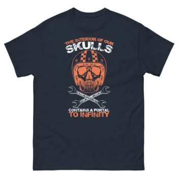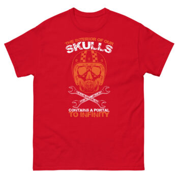 The “Skulls Portal to Infinity” Graphic T-Shirt fuses eerie skull imagery with industrial wrench details, creating a unique design for lovers of dark and mechanical art.
