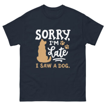 Let’s face it—dog lovers can’t resist stopping for a furry friend. Whether it’s a wagging tail, a playful bark, or those irresistible puppy eyes, dogs have a magical way of derailing our schedules. That’s why the “Sorry I’m Late, I Saw a Dog” t-shirt isn’t just another dog humor t-shirt—it’s a badge of honor for anyone who’s ever been late because of a dog.