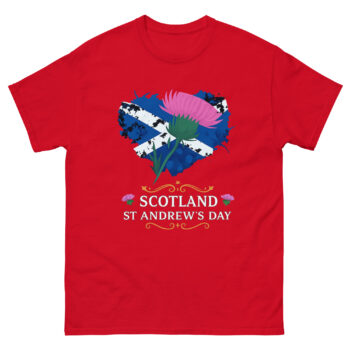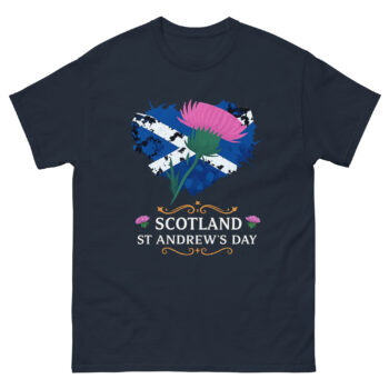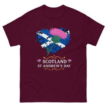 This St Andrew’s Day Scotland t-shirt combines the boldness of the Saltire flag with the beauty of the Scottish thistle. Perfect for showing your heritage and national pride at festivals, gatherings, and cultural events.