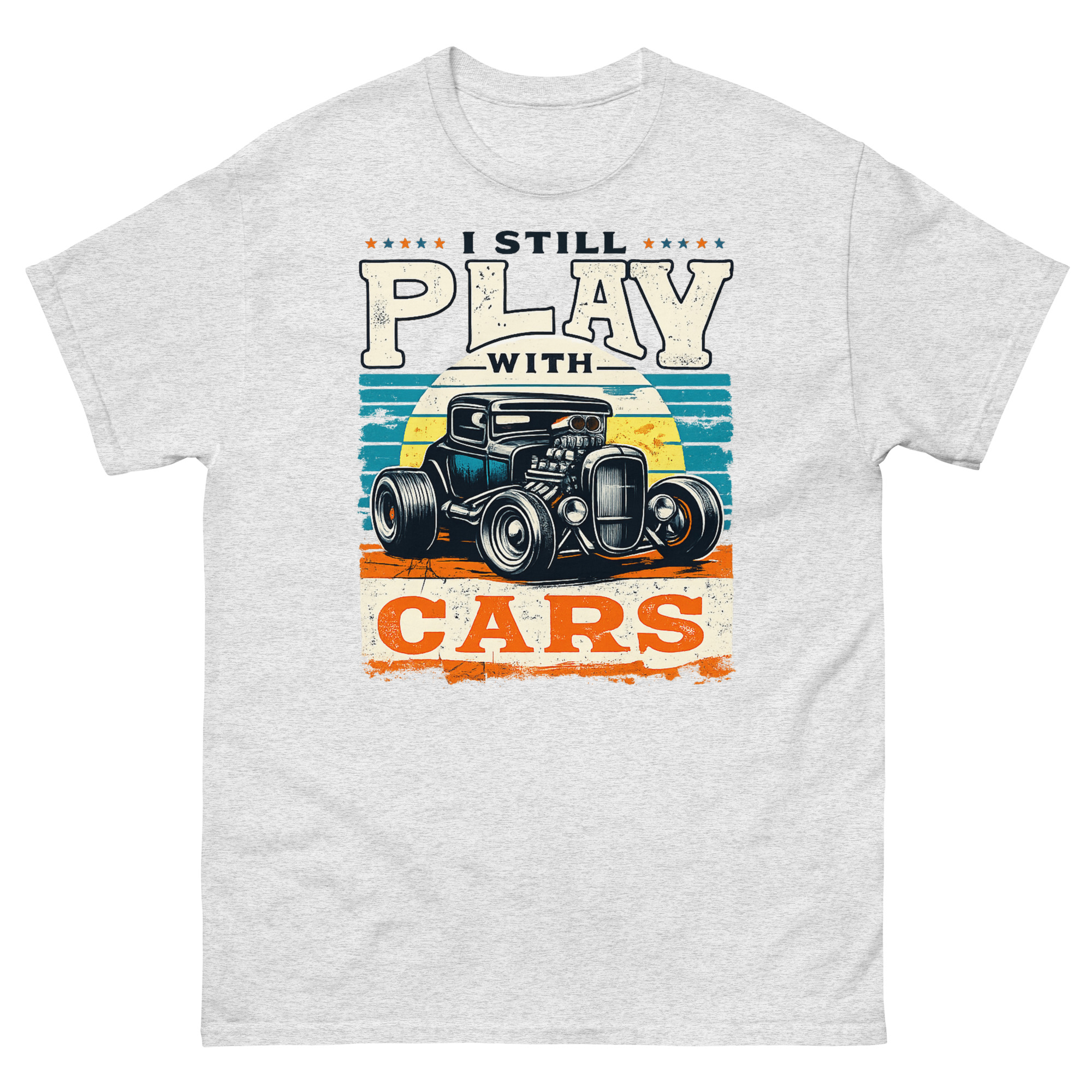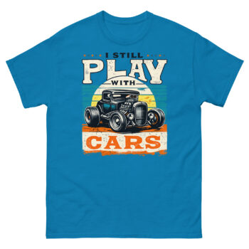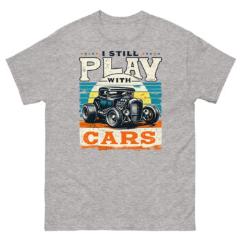 Ready to make your statement? The Still Plays With Cars T Shirt is more than just another graphic tee, it’s a badge of honor for your lifelong hobby. Click ‘Add to Cart’ now to get this unique piece of retro automotive art delivered to your door. Whether you’re buying it for yourself or as the perfect gift for a car guy, it’s designed to be worn, appreciated, and enjoyed for years to come.