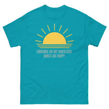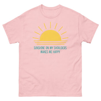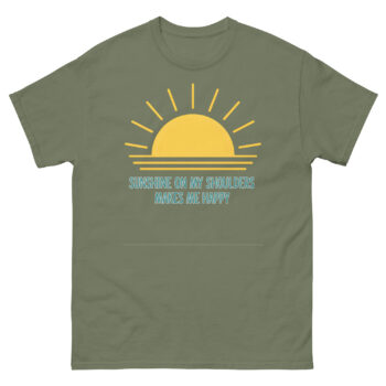 Ready to carry a little sunshine with you wherever you go? The Sunshine On My Shoulders Makes Me Happy T Shirt is your ultimate nature-inspired casual wear piece. This sunny day lifestyle shirt is ideal for morning walks, beach trips, or any moment you want to feel connected to the warmth of the world. It makes a fantastic inspirational apparel gift for the person who always stops to appreciate the light. Don’t wait to add some golden rays to your wardrobe, click ‘Add to Cart’ now to get your official sun lyric tee delivered before your next beautiful sunrise.