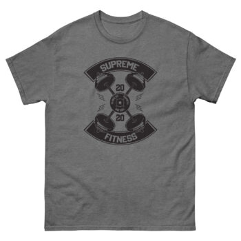 The bold “SUPREME FITNESS” text, paired with dumbbells and weight plates, serves as a constant motivator. Every rep, every set—this strength training dumbbell shirt keeps you locked in.