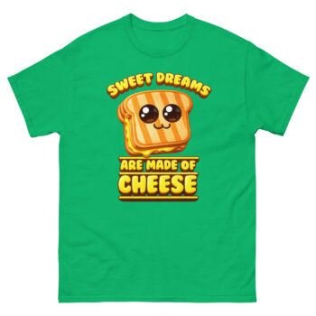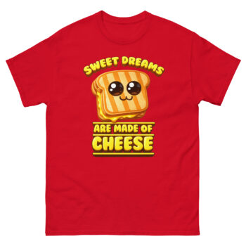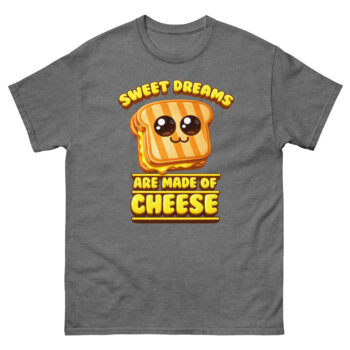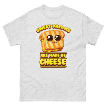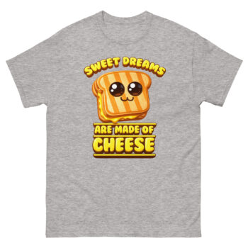 What makes this shirt unique is its clever twist on a classic song lyric, turning “Sweet dreams are made of this” into a cheesy delight. The design was inspired by a late-night snack session and a love for wordplay. It’s perfect for people who enjoy witty apparel and want to spark smiles wherever they go.