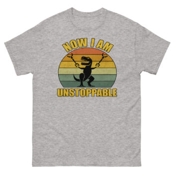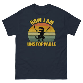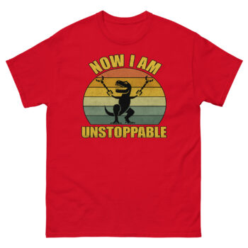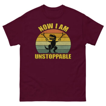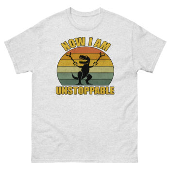 The T-Rex Unstoppable Shirt is the blend of humor and motivation featuring a hilarious illustration of a T-Rex who finally broke free and now declares, “Now I Am Unstoppable.” It’s a funny, feel-good graphic tee for anyone who loves dinosaurs, witty quotes, or just wants to make people laugh. The vintage-style sunburst background adds a nostalgic touch, while the bold text makes this design pop in any casual outfit.