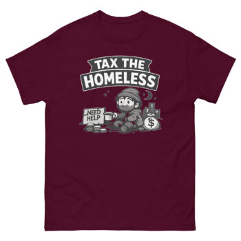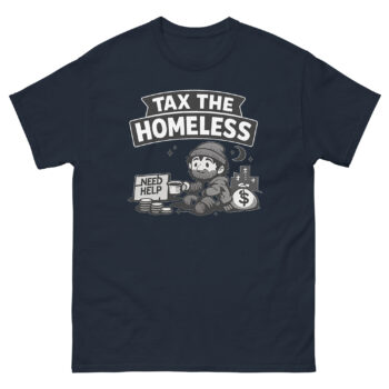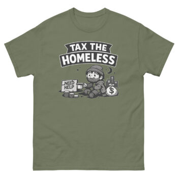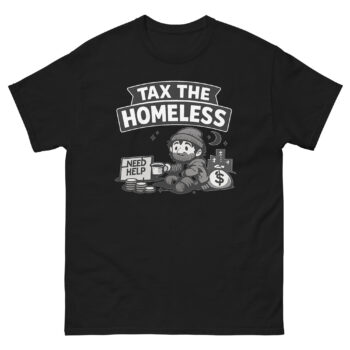 In an era of endless inflation and bewildering taxes, sometimes the only sane response is dark humor. Our latest design channels that collective sigh into a bold, conversation-starting graphic tee. This Tax The Homeless Shirt isn’t just another slogan print on tee; it’s a piece of satirical economic commentary apparel for those who use wit to cope with the absurd. Meet the shirt that turns your unpopular opinion on the political economy into wearable art.